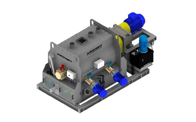 Объемы смесителя непрерывного типа достигают от 1050 до 4550 литров. Производительность смешивания составляет от 25 до 103 тонн в час, в зависимости от рецепта смеси и конфигурации смесителя. Некоторые модели оснащены гидравлическими системами для открытия выгрузочных люков и пневматическими системами для очистки, что повышает удобство их использования и надежность. Смеситель выполнен из высококачественных износоустойчивых материалов, таких как нержавеющая или углеродистая сталь.